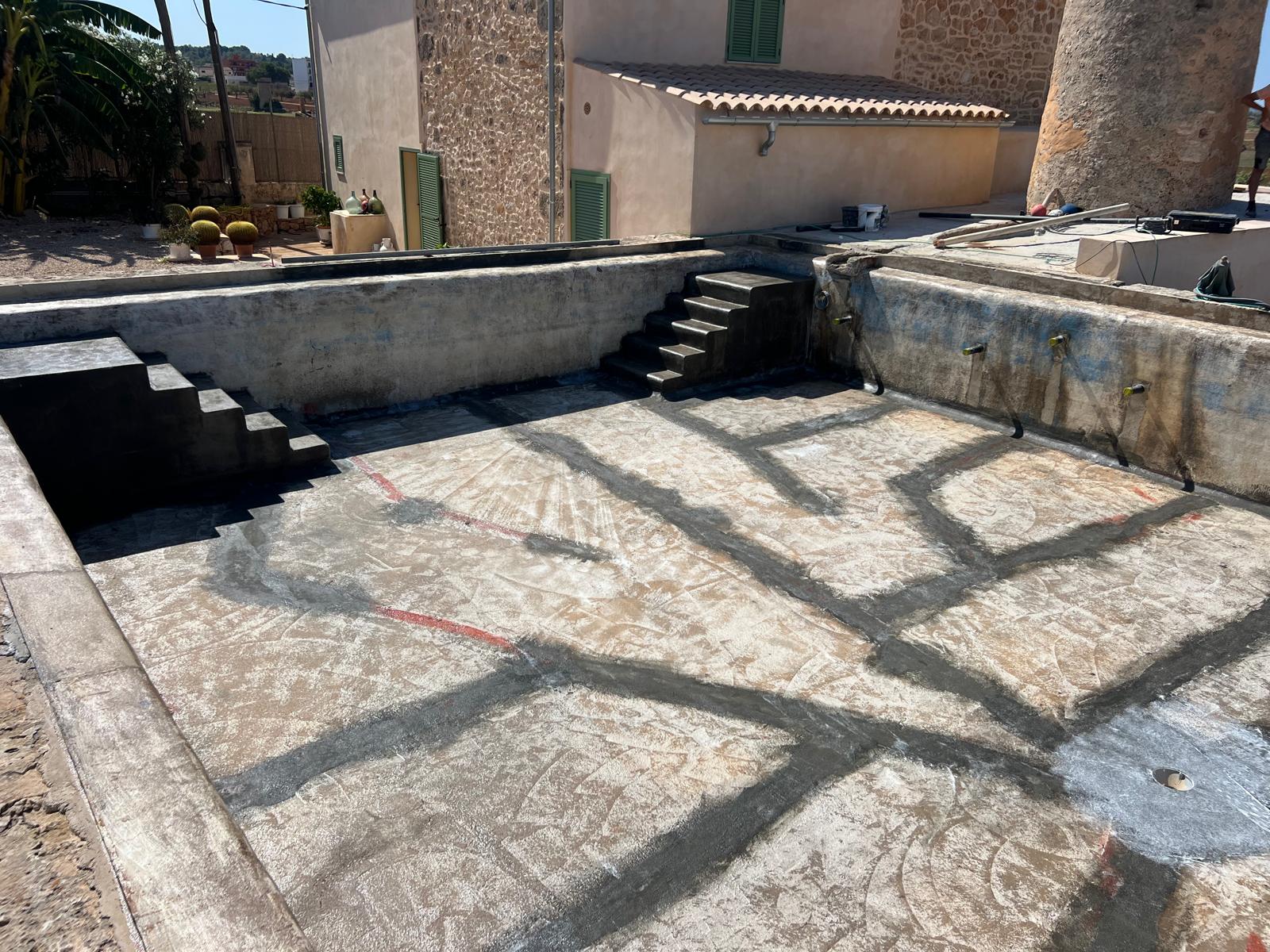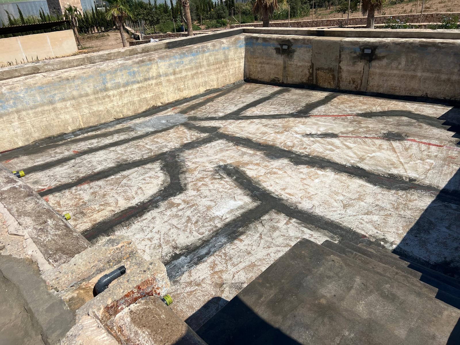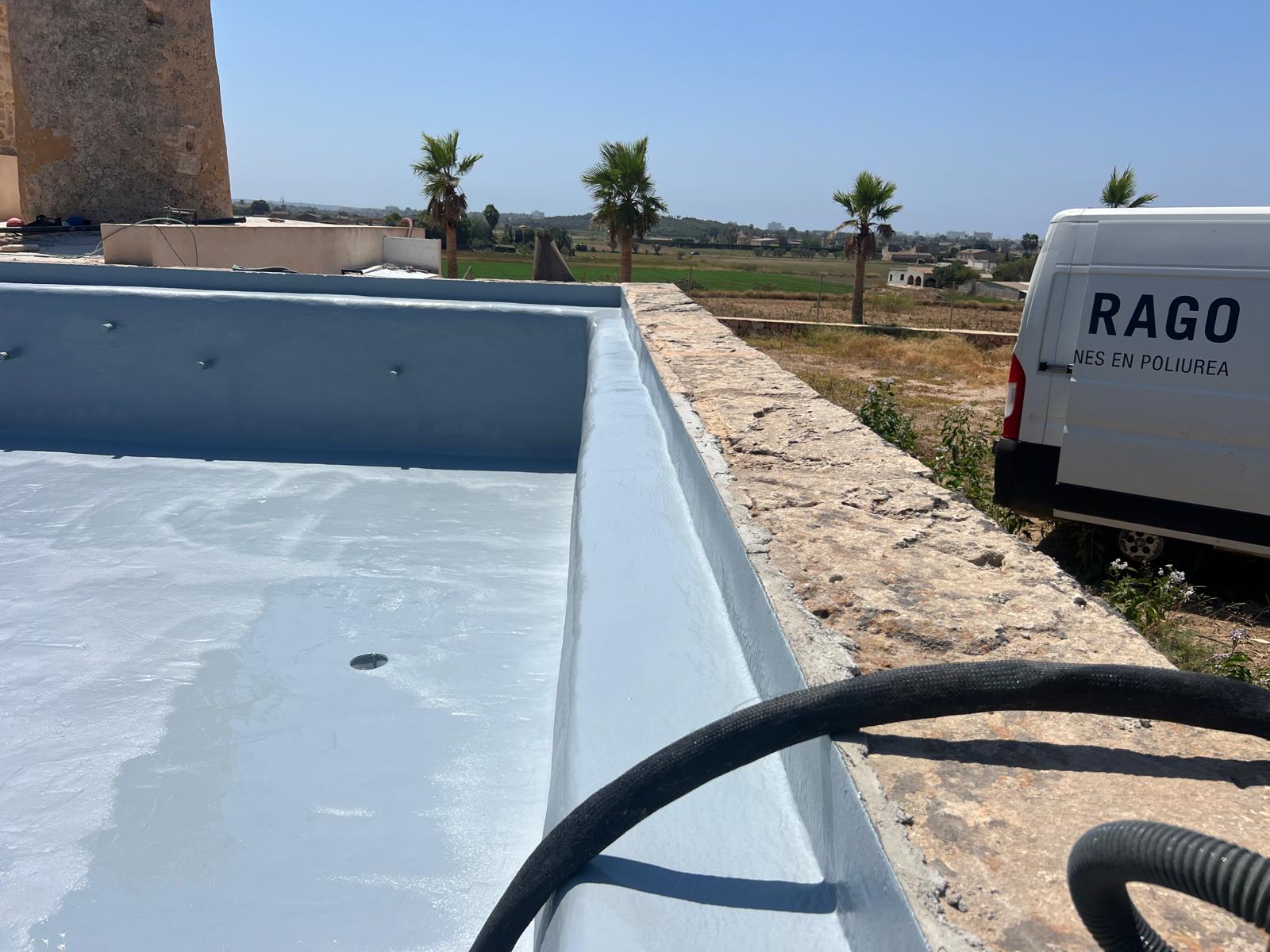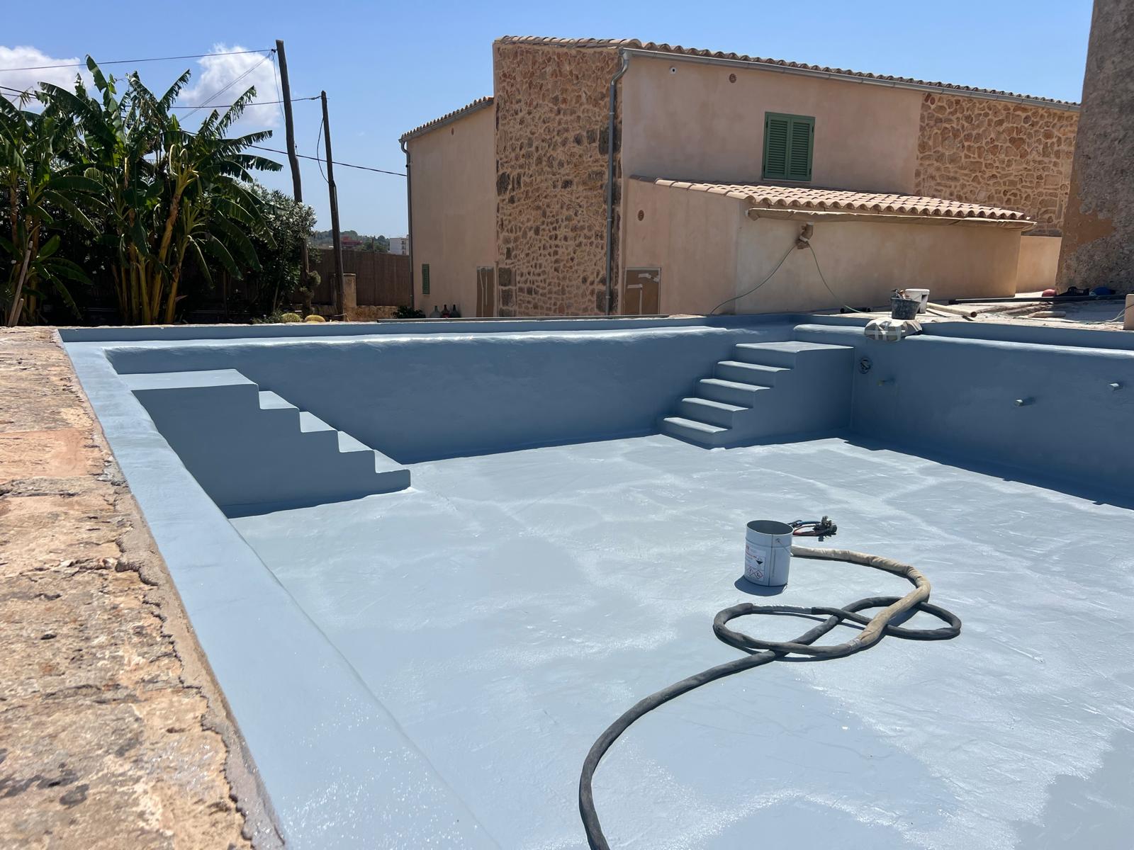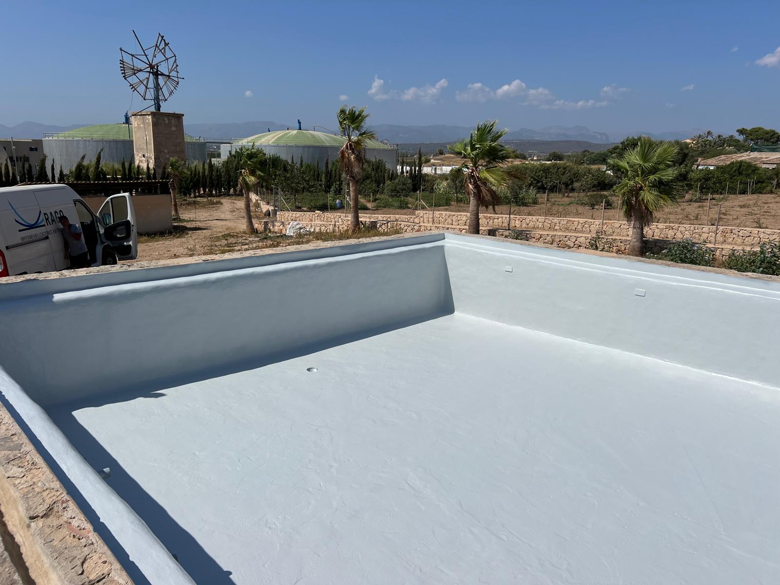 Proyecto de impermeabilización de piscina en la zona de Sant Jordi, con trabajos de saneamiento y preparación del soporte. Se aplicó una primera imprimación ACE WB52, seguida de una capa de ACE Premier Flex Plus para optimizar la adherencia del sistema. El revestimiento se completó con poliurea ACE PU 100 y acabado final con pintura ALI ACE Flex en color RAL 9002, garantizando una solución continua, resistente y duradera.